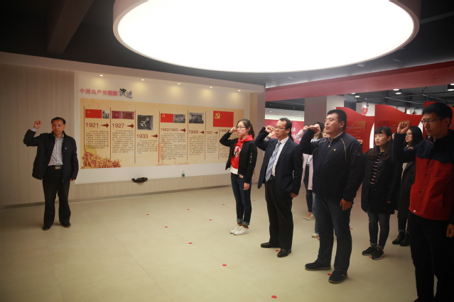 2017年11月,党员赴高淳新四军纪念馆开展重温入党誓词活动,直属党支部书记邱振清(左一)领誓