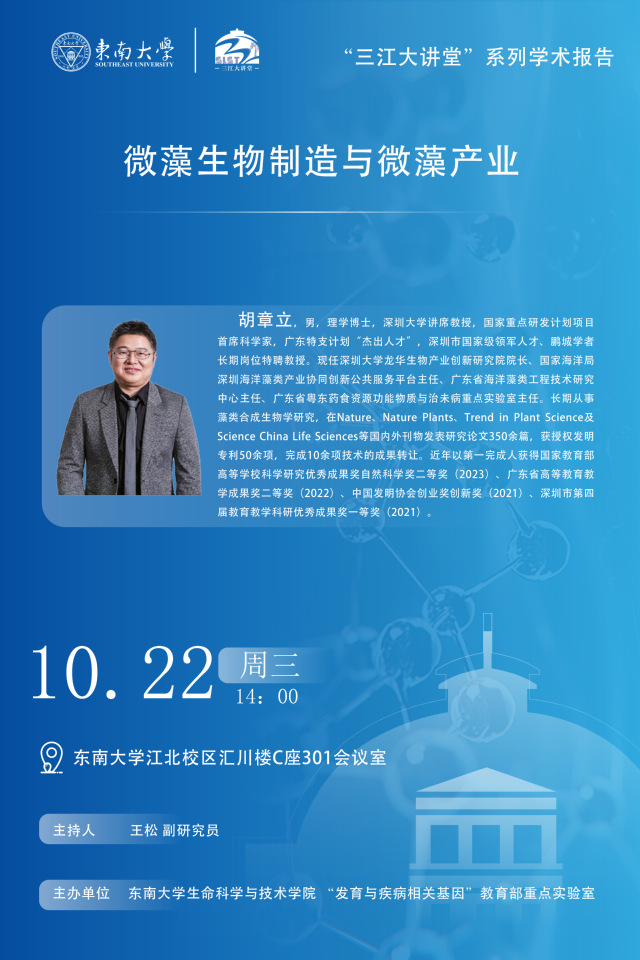 “三江大讲堂”系列学术报告——深圳大学胡章立教授:微藻生物制造与微藻产业