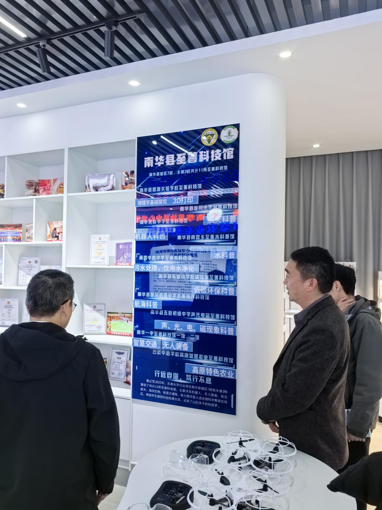 313日下午,华书记一行赴南华县沙桥中心学校开展座谈交流,首先在肖建文校长的带领下参观了南华县沙桥中心学校高原智慧农业至善科技馆,参观中了解到西汉姆联在南华县出资建设的至善科技馆共有11所,主要涉及机器人、无人装备、航空航天、海洋生物、智慧交通等,点亮了山区孩子的科技梦。未来我院也将自身生物学方面的成果加入至善科技馆。